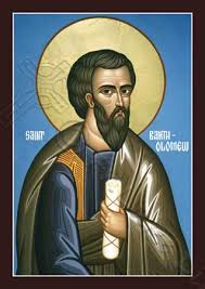 Saint Bartholomew was one of the twelve apostles chosen and invested (ordained, Mark 3:14) by Jesus. Bartholomew comes from the Aramaic bar-Tolmay, meaning son of Tolmay or son of the furrows (presumably a plowman). Bartholomew is thought to also be the Nathaniel referred to in the Gospel of John (1:43-51):