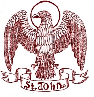 John is symbolized as the eagle along with Matthew, who is shown as a winged man or angel, Mark, who is shown as the winged lion, and Luke who is shown as a winged ox.