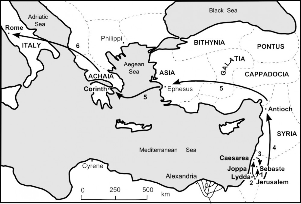 Around A.D. 44 (after persecution from King Herod Agrippa) Peter undertook missionary journeys to Lydda, Joppa, and Caesarea, and the Holy Spirit told Peter that Jesus of Nazareth was the Messiah of the Gentiles as well as of the Jews (Acts 10:34 to 11:18).