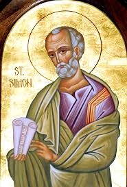 Saint Simon Zelotes was one of the twelve apostles chosen and invested (ordained, See Mark 3:14) by Jesus. He was a Jewish merchant in the village of Capernaum which was on the north shore of the sea of Galilee. He was 28 years old when he was chosen and invested (ordained) by Christ. Simon was one of the most obscure of the Apostles. He is not to be confused with Simon Peter (see above) or Simon the Sorcerer (Simon Magus).
