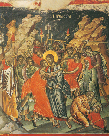 According to all four canonical gospels, Judas betrayed Jesus to the Sanhedrin in the Garden of Gethsemane by kissing him and addressing him as “rabbi” to reveal his identity to the crowd who had come to arrest him. This act of course defines Judas an apostate and as a betrayer.
